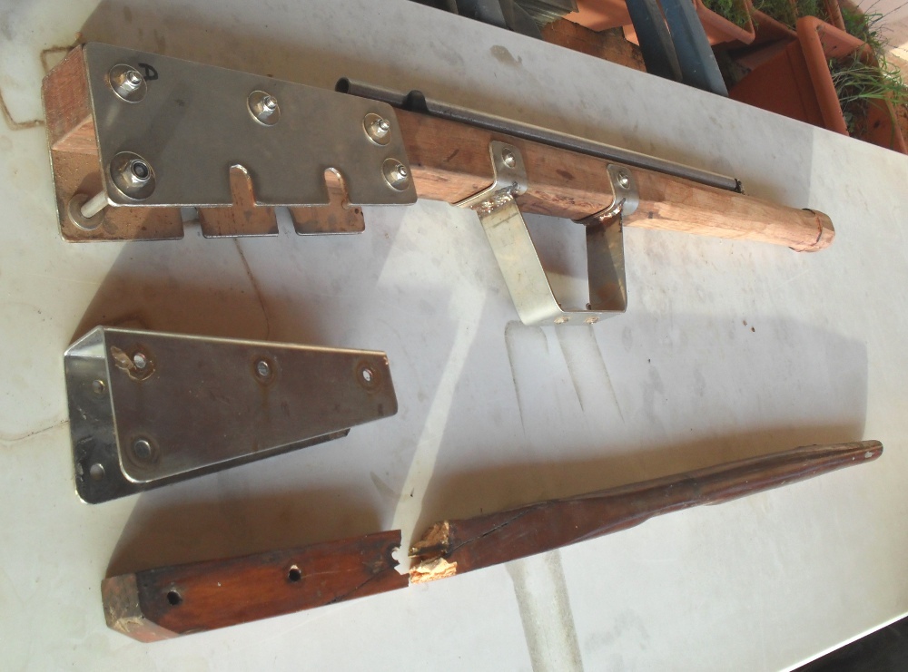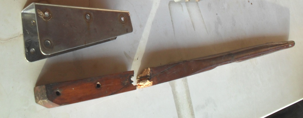 J'ai cassé la barre d'origine en l'abaissant un peu violemment , heureusement c'était au mouillage. L'aviron enfilé dans la ferrure de tête de barre a permis de rentrer sans problème mais malheureusement sans pilote automatique.
