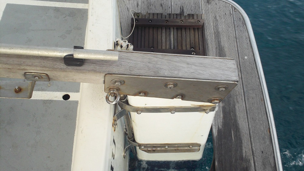 La barre relevée et non immobilisée est la première chose dont se saisissent les passagers qui remontent sur la plateforme (le mat de pavillon a été supprimé et l'antenne VHF est sur le portique , inaccessible...). En général ils retombent à l'eau assommés après avoir pris un coup de barre sur la tête...