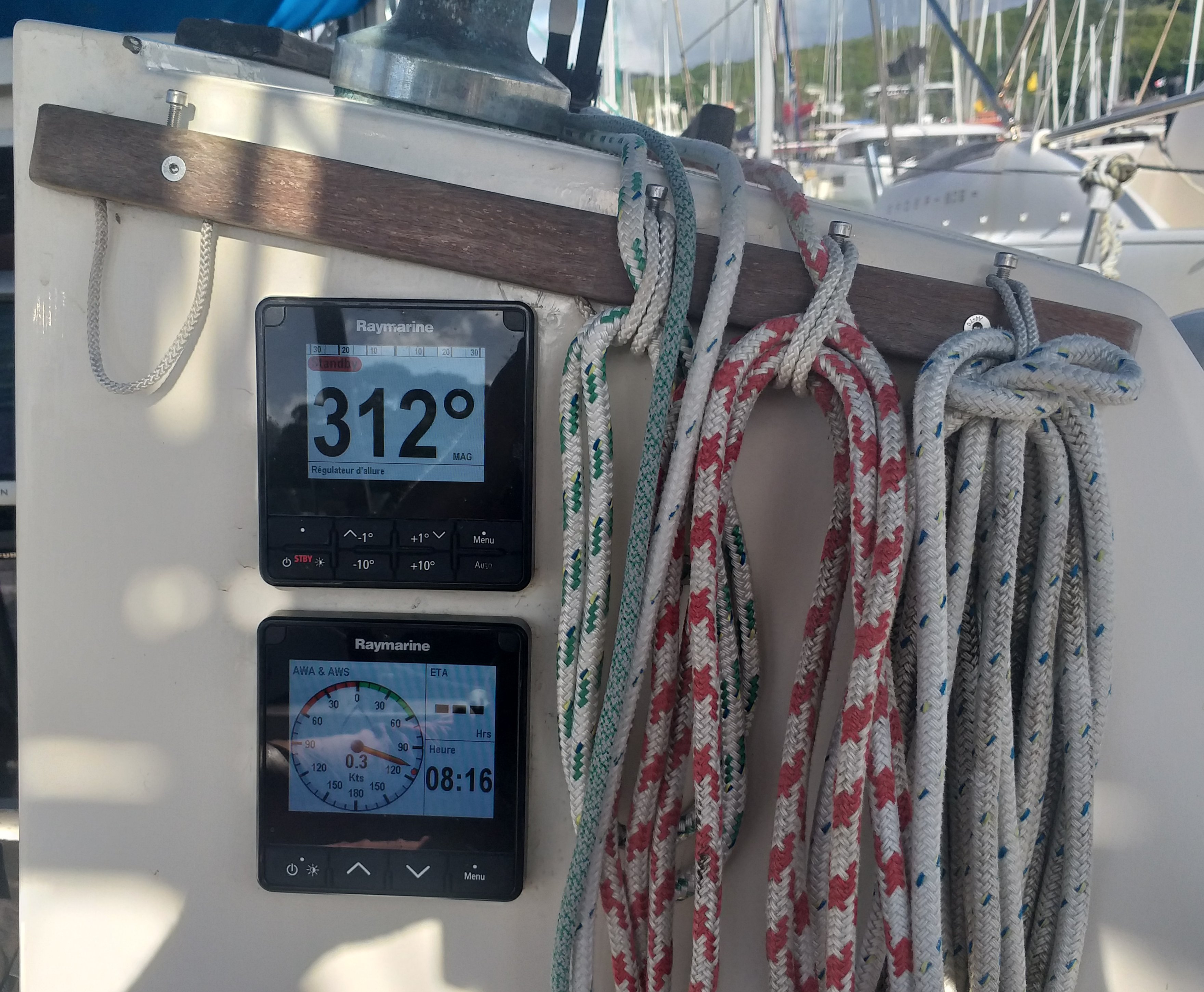 Les deux afficheurs : p70s pour le contrôle du pilote automatique et i70s pour l'affichage des paramètres vent (et autres) sont positionnés à l'extérieur sur la paroi arrière droite du roof dans des trous déjà existants.