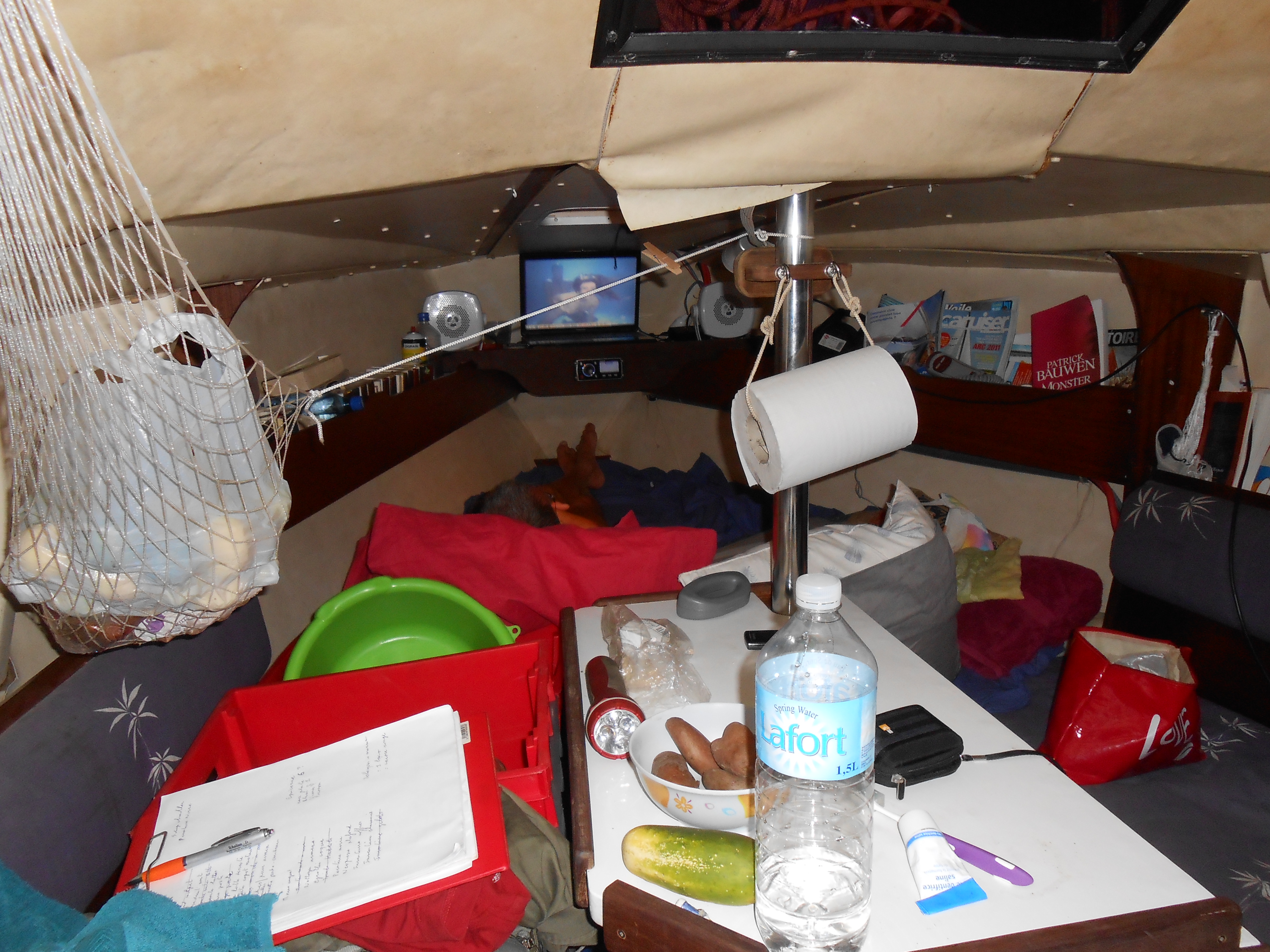 La couchette avant , située sous le capot avant est la mieux ventilée du bateau et donc la plus agréable aux Antilles.