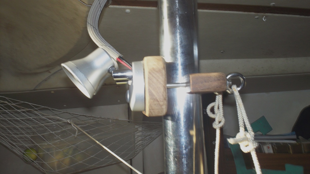 On peut faire tourner les lampes de 180 ° sur l'épontille pour éclairer la table , par ailleurs les deux boulons à oeil de réglage du serrage permettent de fixer un rouleau de sopalin toujours à portée de main pour les repas.