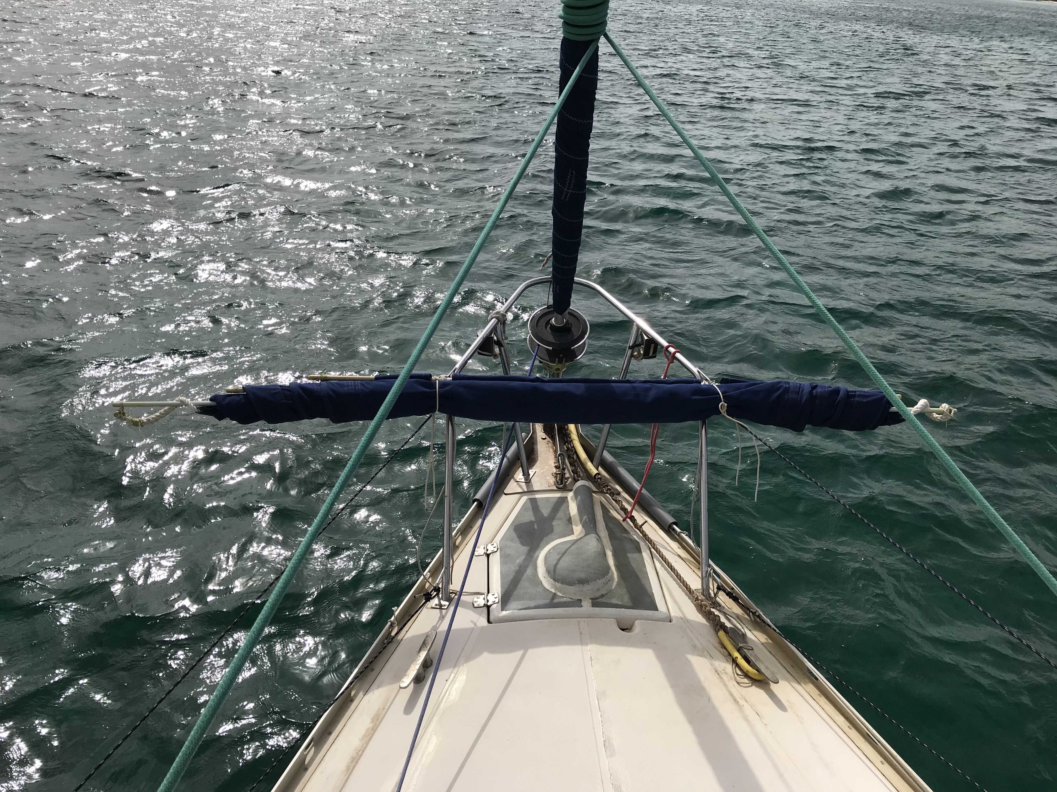 Si on a passé les écoutes de foc au dessus des bouts latéraux , on peut même accéder à la baille à mouillage pour remonter l'ancre et naviguer pour une courte durée en larguant simplement le bout avant (et en fermant le capot avant...)